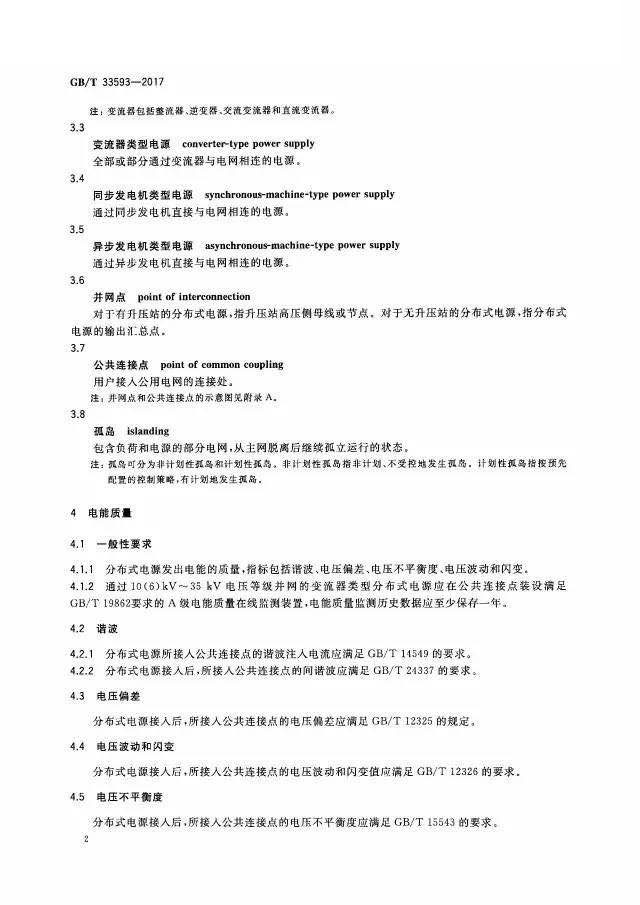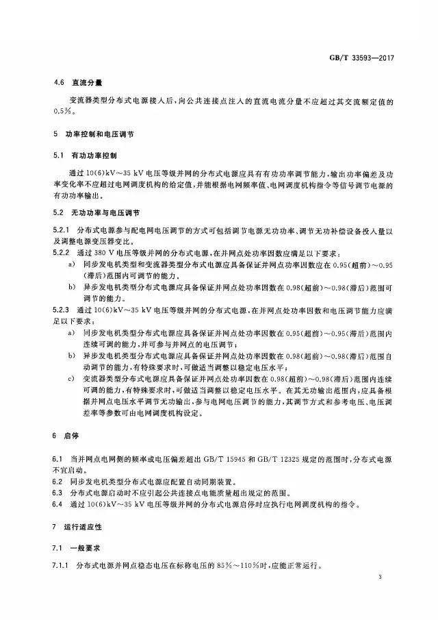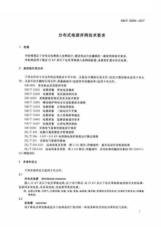 2017年05月12日,国家质量监督检查检疫总局、国家标准化管理委员会正式发布国标《分布式电源并网技术要求》 GB∕T 33593-2017,本标准将于2017年12月01日开始实施。