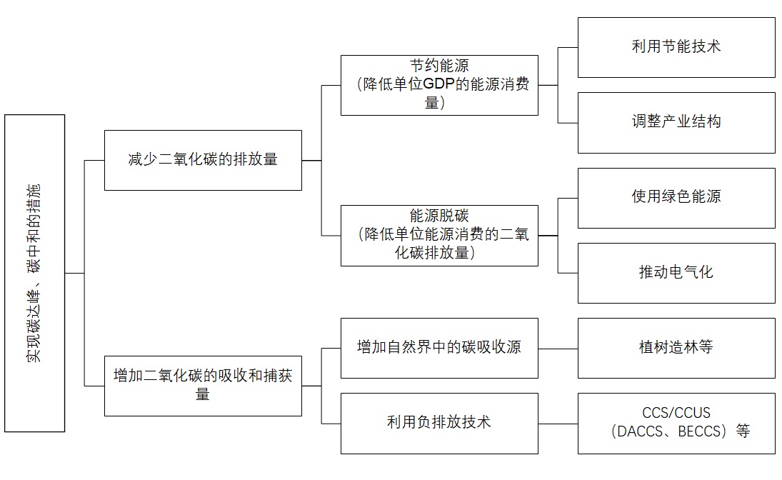 此外,由于有些行业很难实现零排放,因此需要通过从大气中吸收或捕获二氧化碳来抵消剩余部分。一是通过植树造林等土地利用变化和林业方面的活动,增加自然界中的碳吸收源;二是利用负排放技术,如碳捕获与封存CCS (Carbon Dioxide Capture and Storage),以及同时考虑碳有效利用的CCUS(Carbon Dioxide Capture and Utilization or Storage)。其中对于DACCS(直接对大气中存在的二氧化碳进行捕获和存储)以及在生物质能发电站运用的BECCS(Bioenergy with Carbon Dioxide Capture and Storage)等技术的期待相当高。