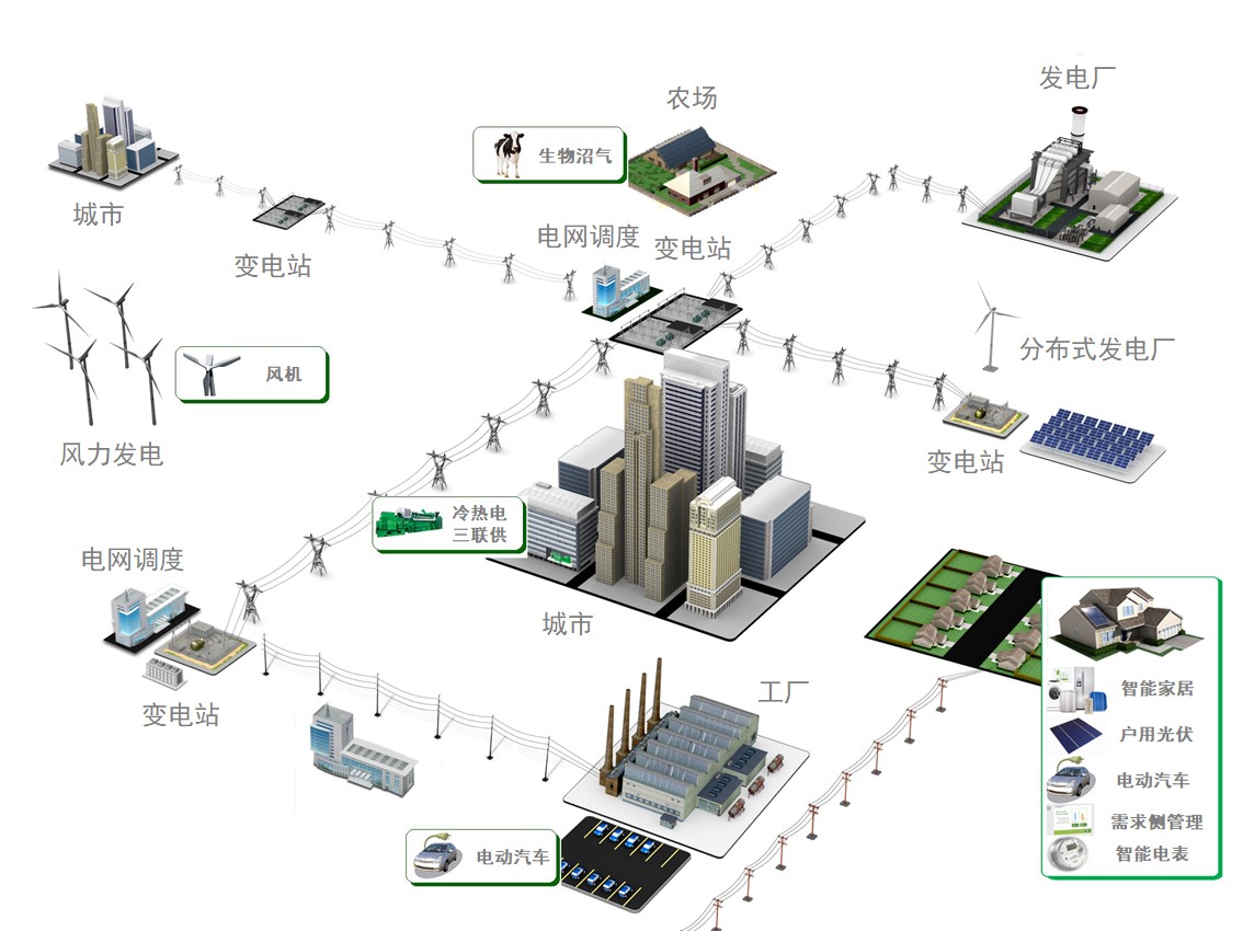 展望未来的幅的未来能源图景:人们在基于可再生能源技术和互联网技术构建的能源互联网上分享绿色能源,地球上每个人、每栋建筑既成为绿色能源的消费者同时也是生产者,分布式的发电站、负载和储能系统将实现能源流和信息流的双向流动,就如同通过互联网任意创建个人信息并分享一样简单。