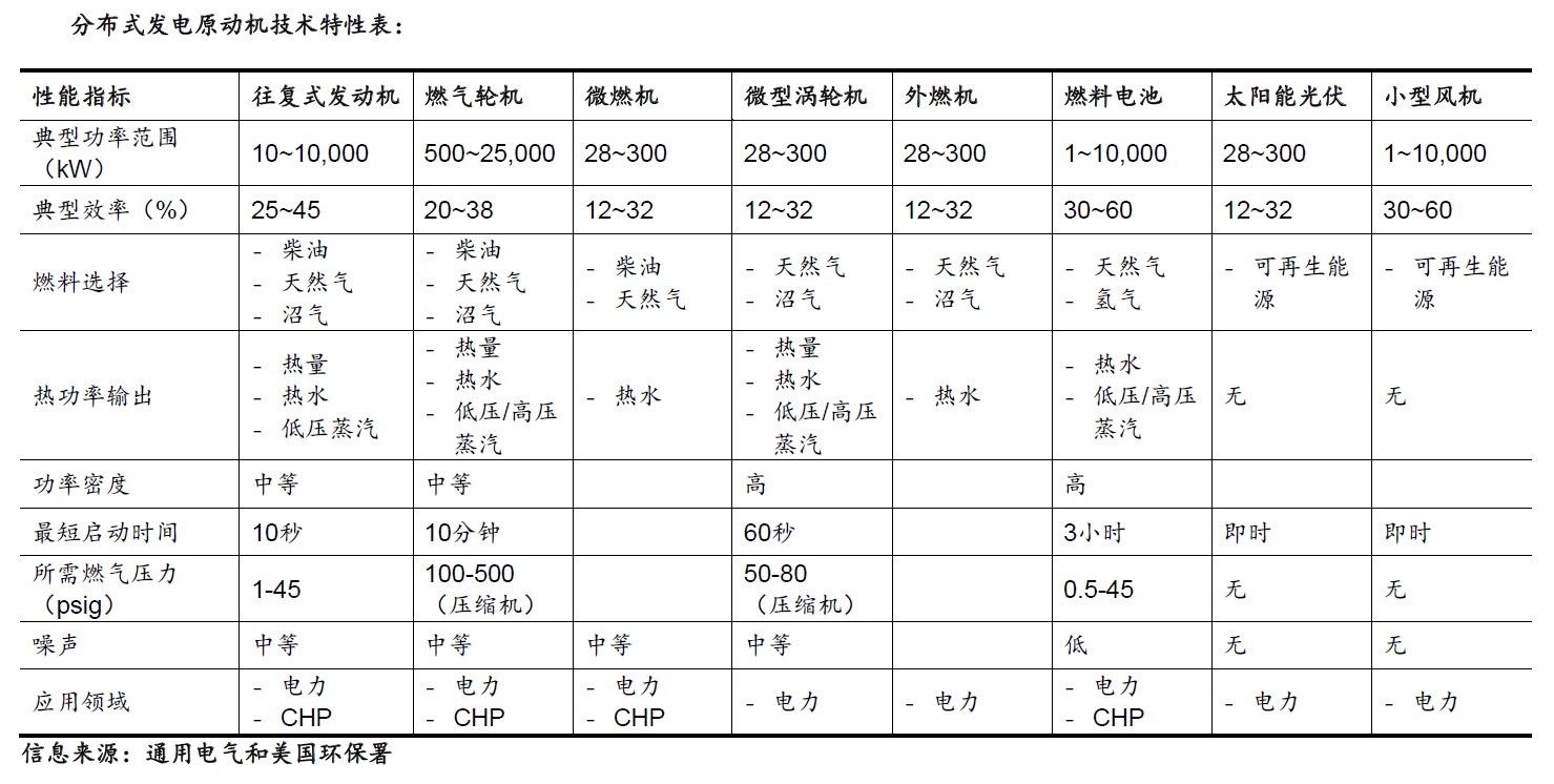1、 传统原动机设备和技术包括:燃气往复式发动机(Gas Engine)、燃气轮机(Gas Turbine)、微型涡轮机(Small Steam Turbine)、外燃机(Sti);