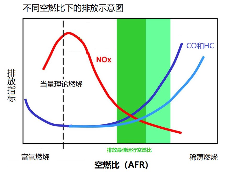 图二:不同空燃比下的排放示意图