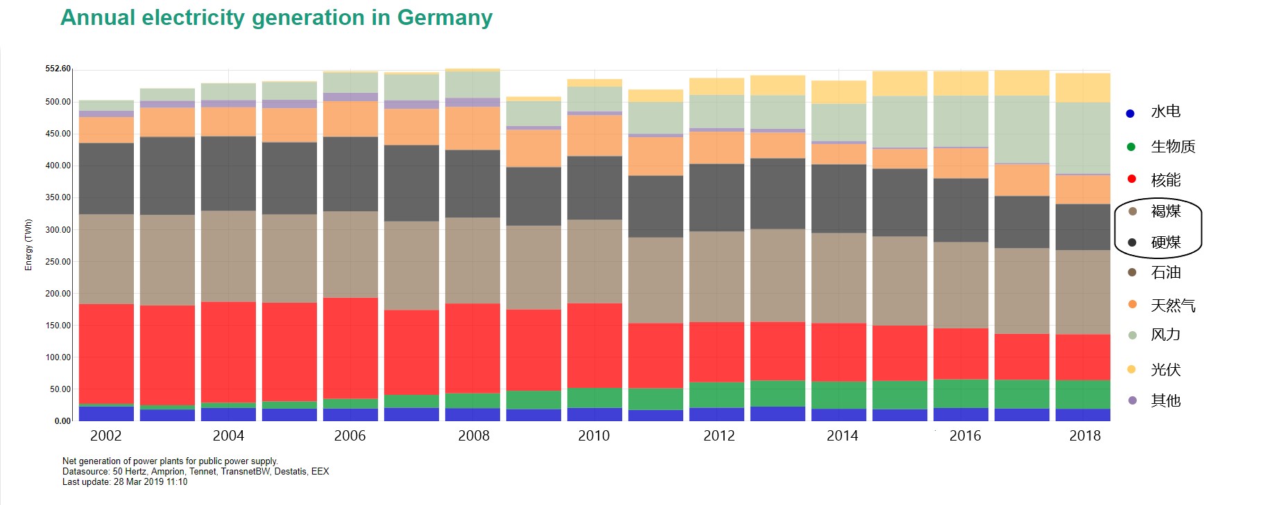 图一:德国发电量结构及发展趋势图