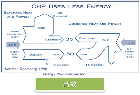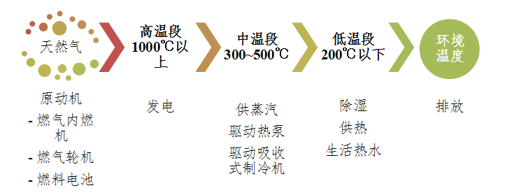 冷热电三联供系统(Combined Cooling Heating and Power,简称CCHP)是天然气分布式能源的典型形式,即以小规模、小容量(设计产能吻合区域能量负荷)、模块化、分散式的方式布置在用户附近,独立的输出冷热、电能的系统。 冷热电三联供系统实质就是“一台设备、三种能效”,通过冷、热、电三联供等方式实现能源的梯级利用,综合能源利用效率在70%以上,实现了能源的梯级、循环、高效利用和避免多次转换、传输损失的“就地直供”。